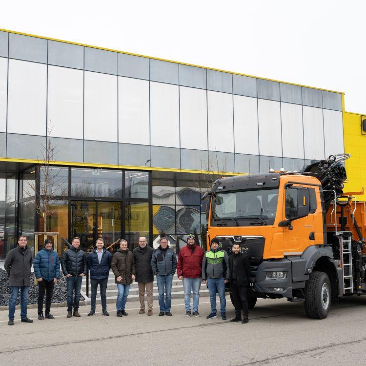 v. l. n. r.: Josef Zellinger (Gföllner) Helmut Humpel (MAN) Roman Eggenfellner (MAN) Jakob Zauner (Gföllner) Kurt Stadlbauer (Amt der OÖ Landesregierung, Betriebswerkstätte Linz) Gerhard Hayböck (Amt der OÖ Landesregierung, Betriebswerkstätte Linz) Michael Hauptmann (Amt der OÖ Landesregierung, Betriebswerkstätte Ried) Florian Schaschinger (Amt der OÖ Landesregierung, Betriebswerkstätte Ried) Michael Schmied (Amt der OÖ Landesregierung, Betriebswerkstätte Ried) Johann Sulzer (HIAB Austria)