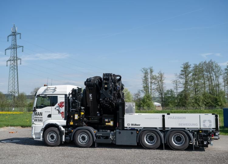 Der LKW-Plateau-Aufbau auf Basis des MAN TGS 35.520 vereint robuste Fahrzeugtechnik mit modernster Krantechnologie. Der Aufbau wurde bei Gföllner konstruiert, gefertigt und technisch umgesetzt – mit höchster Präzision und Fokus auf maximale Einsatzflexibilität.