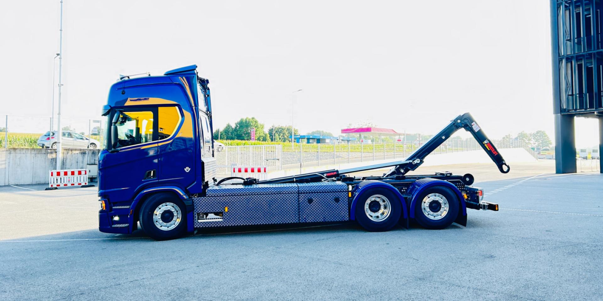 Aufbau eines MULTILIFT Ultima 22SL59 Abrollkippers in Niedrigbauweise zur Volumensteigerung und Gewichtsoptimierung